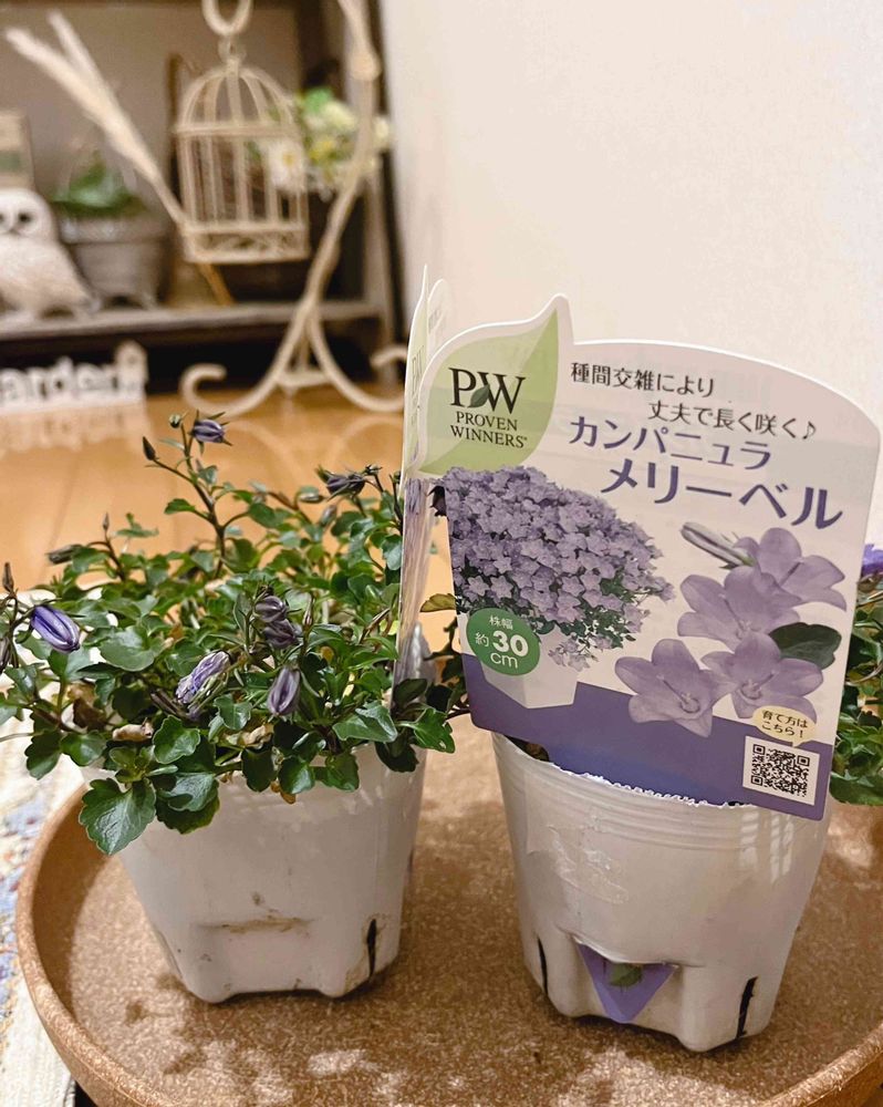 カンパニュラメリーベルさん、🏷には丈夫で長く咲くと表示されてるけど、枯れ枯れなんて、ホームセンターで放置されちゃってたのね〜。舞希さんにお迎えしてもらえて良かった〜♡