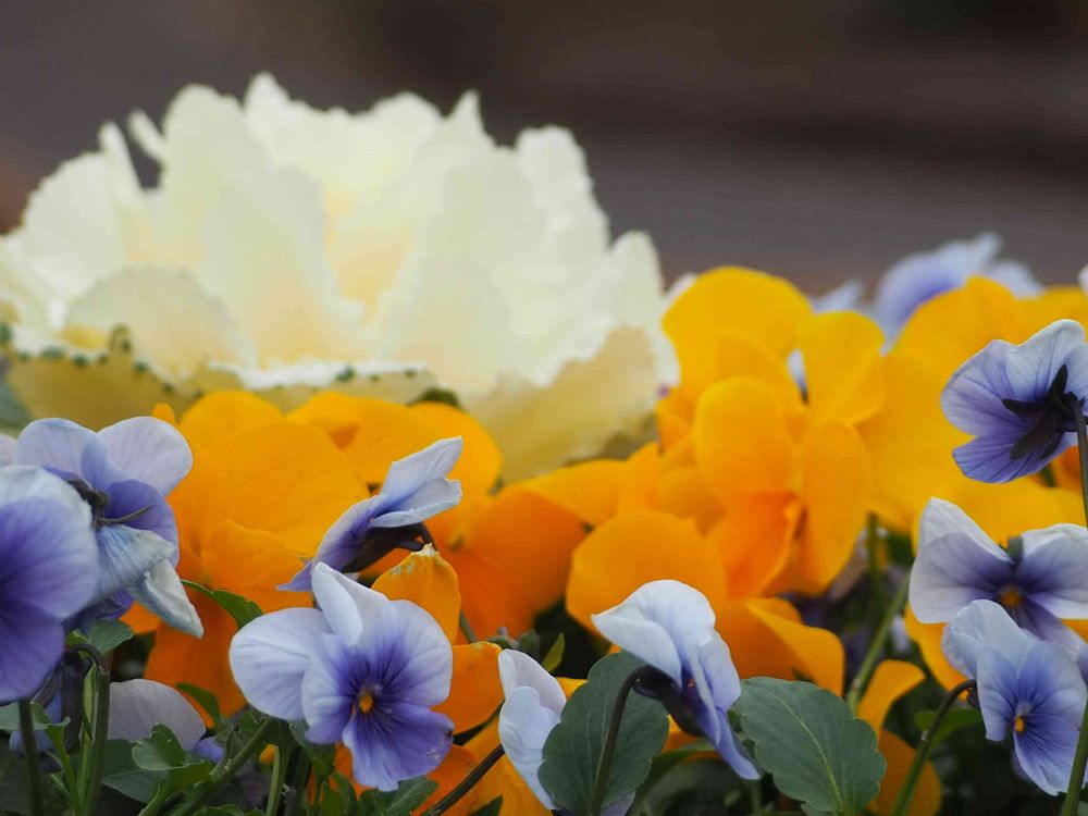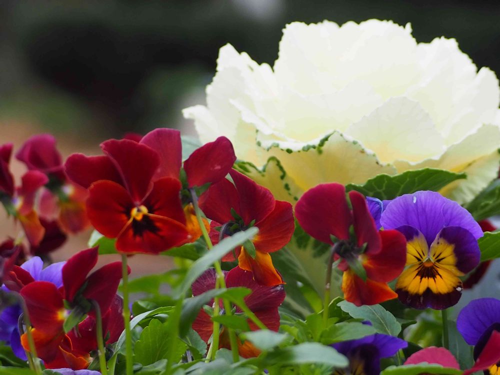 <葉牡丹とビオラ>