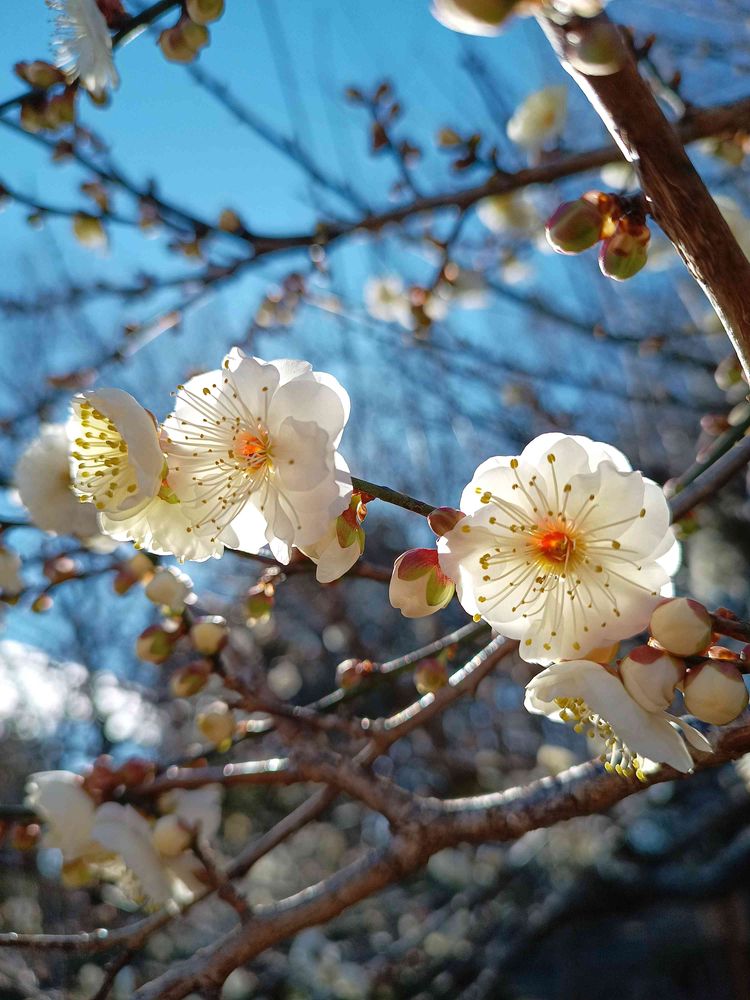 太陽の光に照らされて、透き通った白梅は、とても綺麗ですね😍