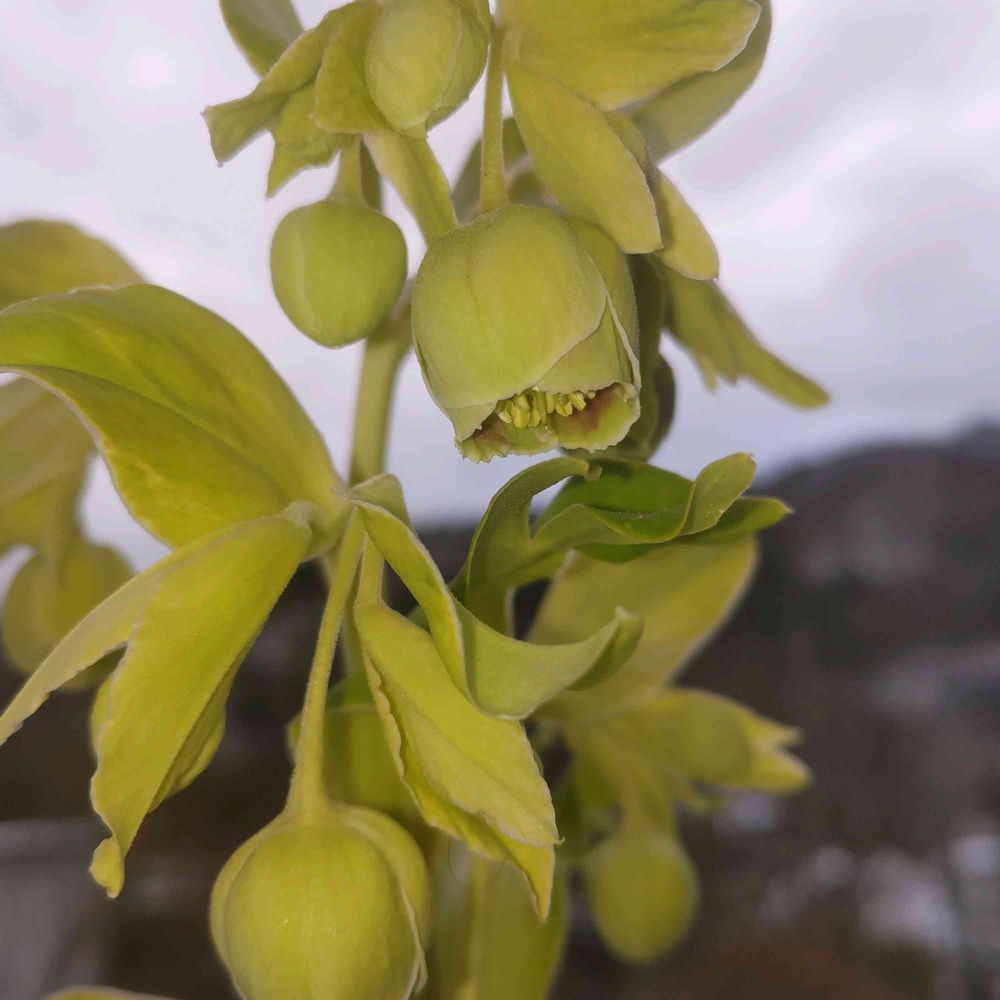 切れ込みの葉とベル型で黄緑色のお花がとても可愛らしいです💓