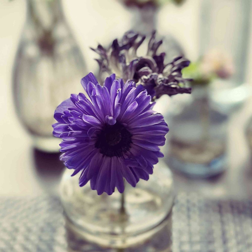 頭が垂れていたアネモネを切って少し室内で楽しんでます。遠くからでもはっきりわかる鮮やかな紫色です