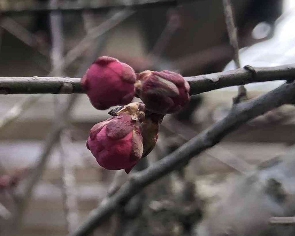 まだツボミは硬いぞ紅梅ちゃん🌸