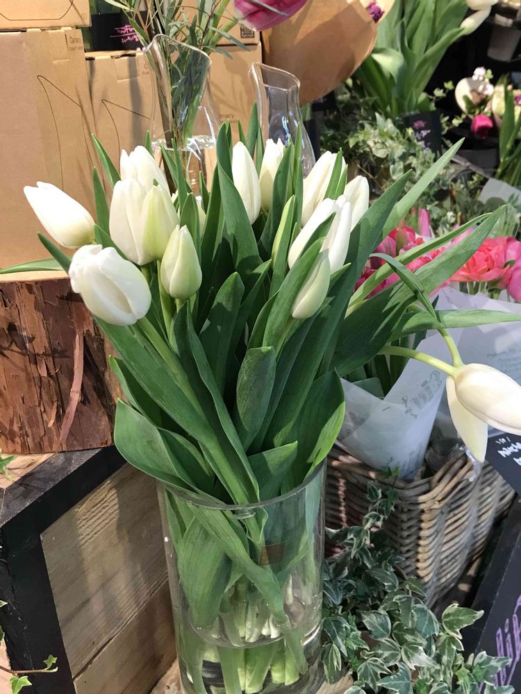 春はまだまだ遠いけど花屋さんの白いチューリップに思わず立ち止まって見とれました(^.^)