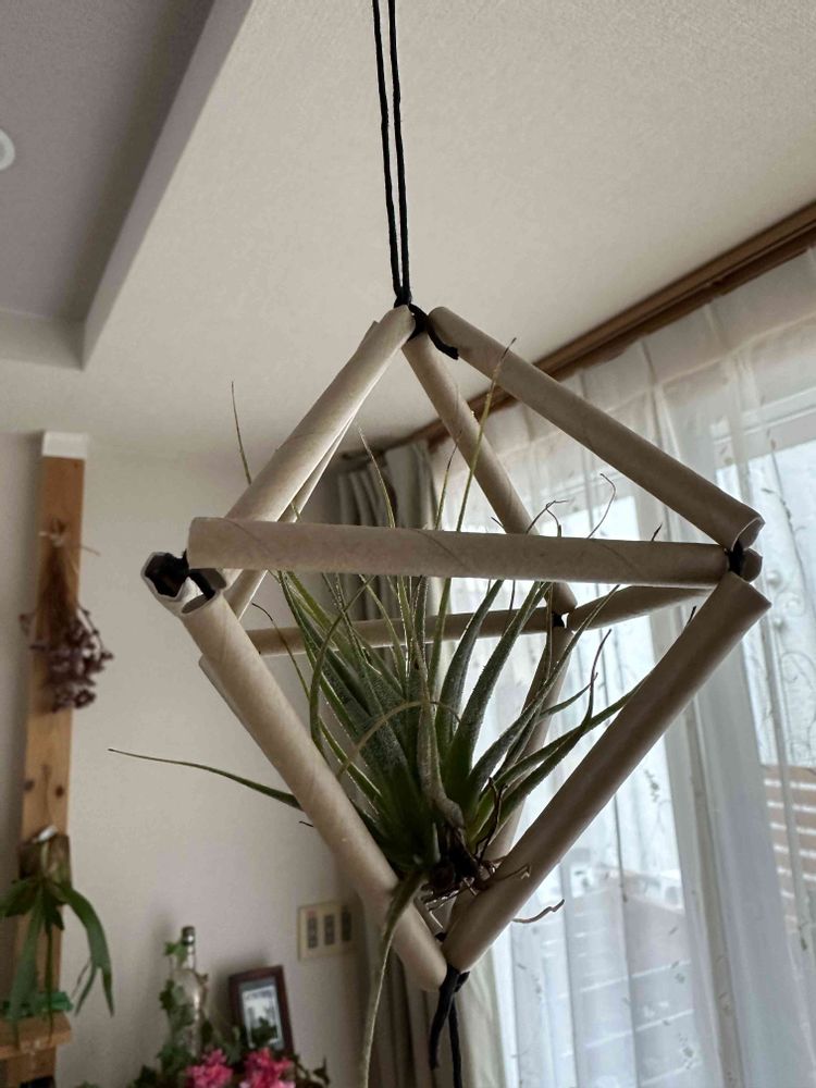 前回木綿糸で作ったのですが、一部切れてしまったのと、エアープランツが入らなかったので、作り直しました。