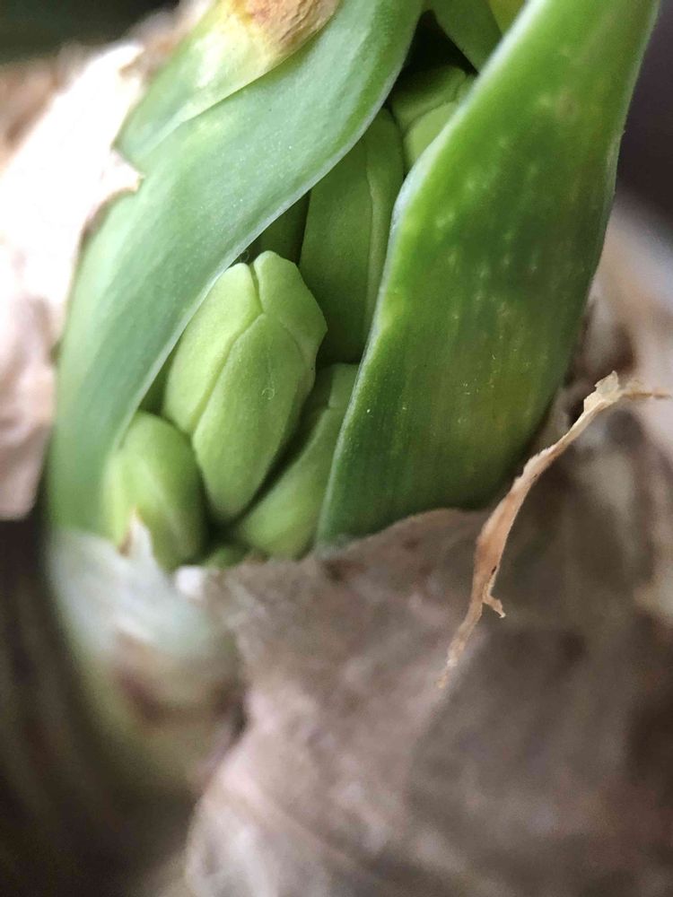 ヒヤシンス蕾は少し上がってきましたよ。葉っぱも少しなのに。(*´艸`)早く花を咲かせたいのかな。🤤