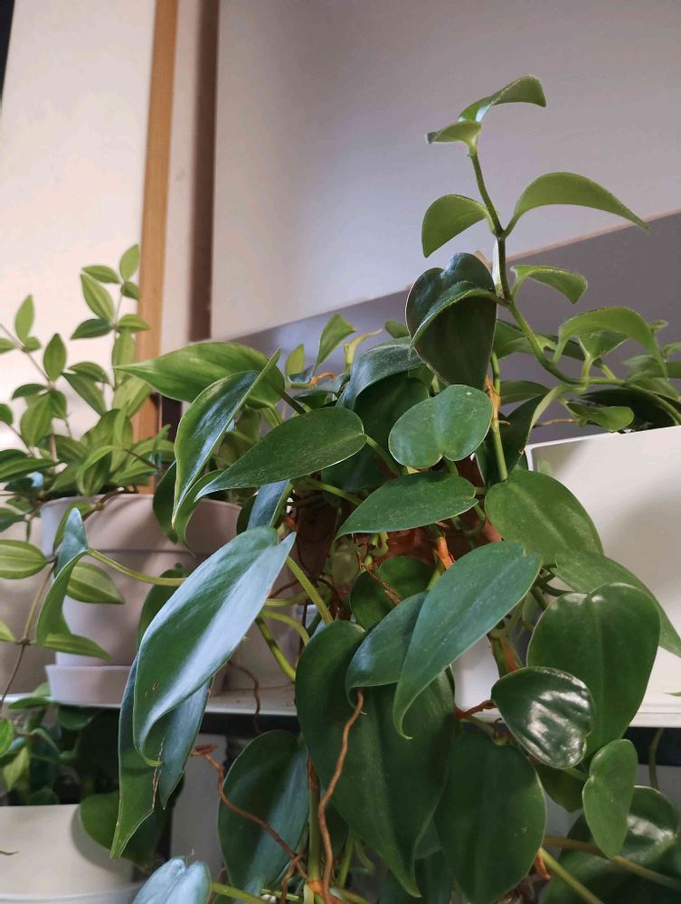 垂れ下がる系ばかり並べてみたくなり置き場所かえました。1枚目はデイスキディアとエスキナンサスマルモラタス、モナリザ。2枚目はフィロデンドロンとペペロミア。