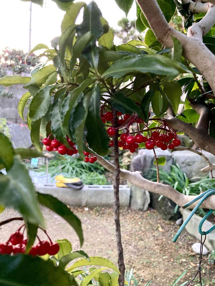 地植えなのでマンリョウはもう少し伸びるはずなのですが 椿さんの枝で押さえつけられ 低めで実をつけています😊
