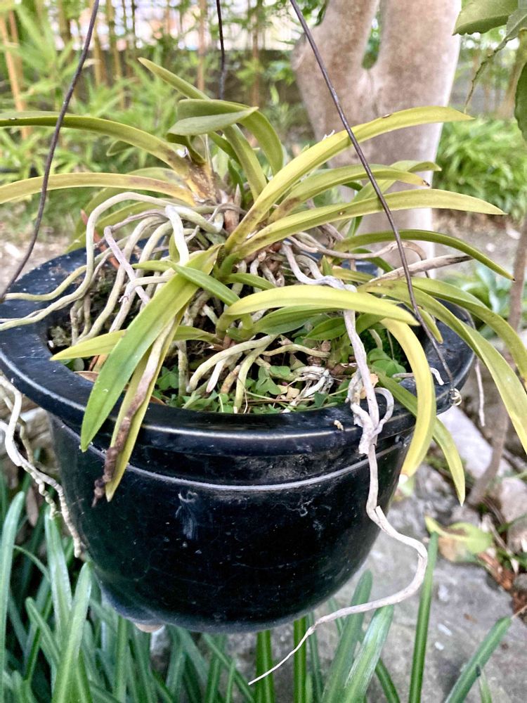 フウランは夏場は 椿さんの木陰で直射日光を浴びずに生きています。
