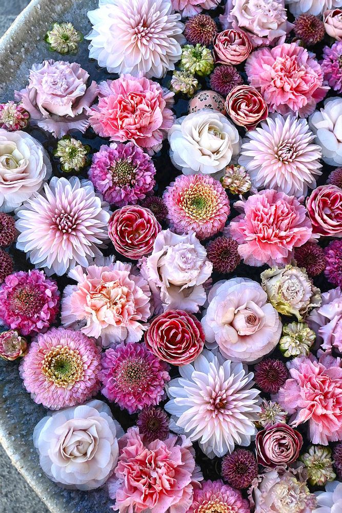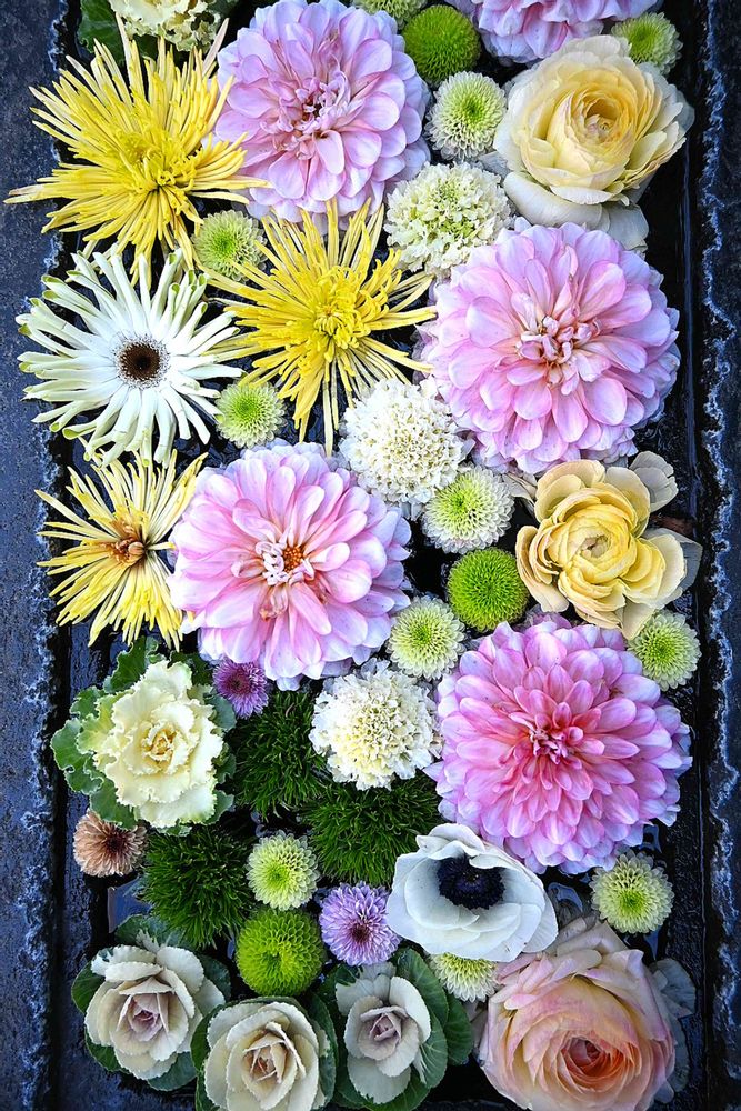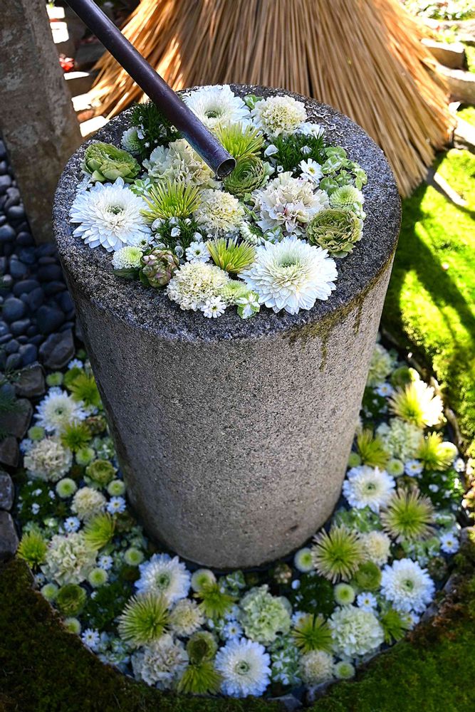 いつも素敵な花手水ですね💐