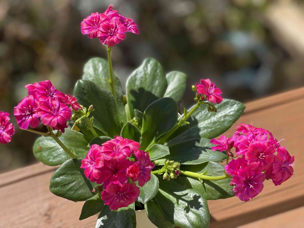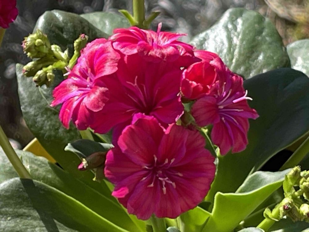 晴れて、レウィシア(レウイシア)の花も葉も艶やかに明るく輝いています☀️✨♫