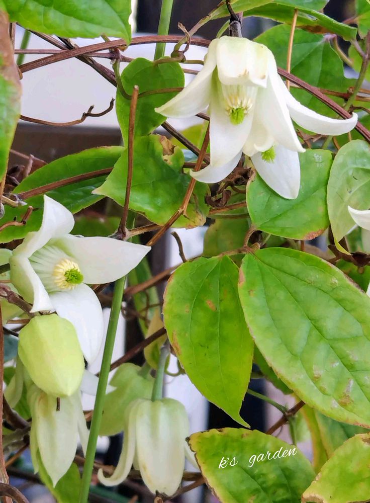 冬咲きクレマチスが可愛く開花し始めました︎🤍🔔🎶