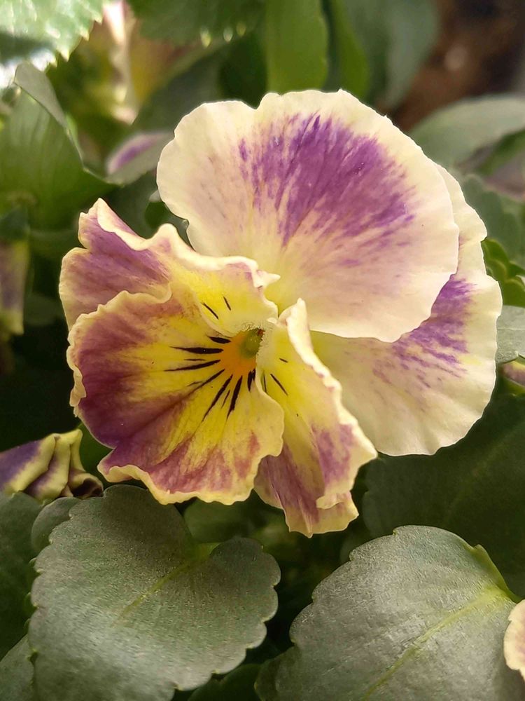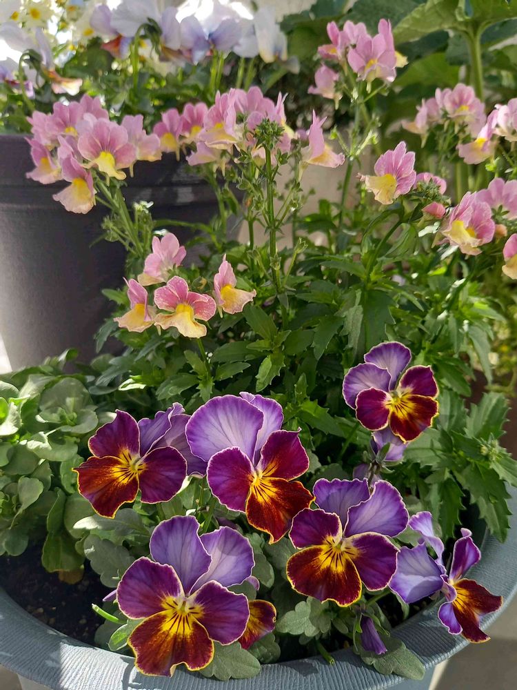 ②フレアーブルーとネメシア、今はお花待ちのビオラ サンピラーの寄せ植え