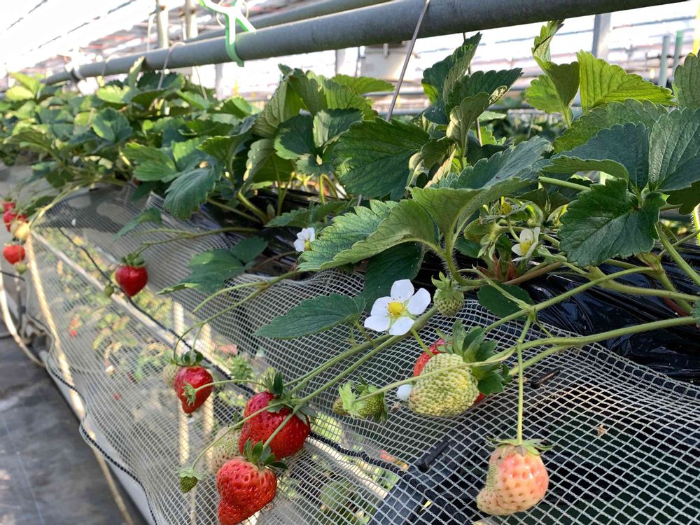 摘み取りしてイートスペースで摘んだいちごを食べて、甘くて美味しくて、また摘んで…