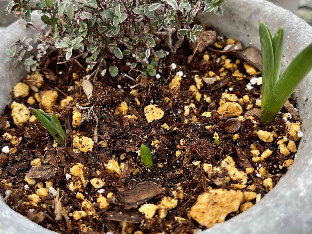 ムスカリは4色の球根セットを植えたけど芽は3つ…💦