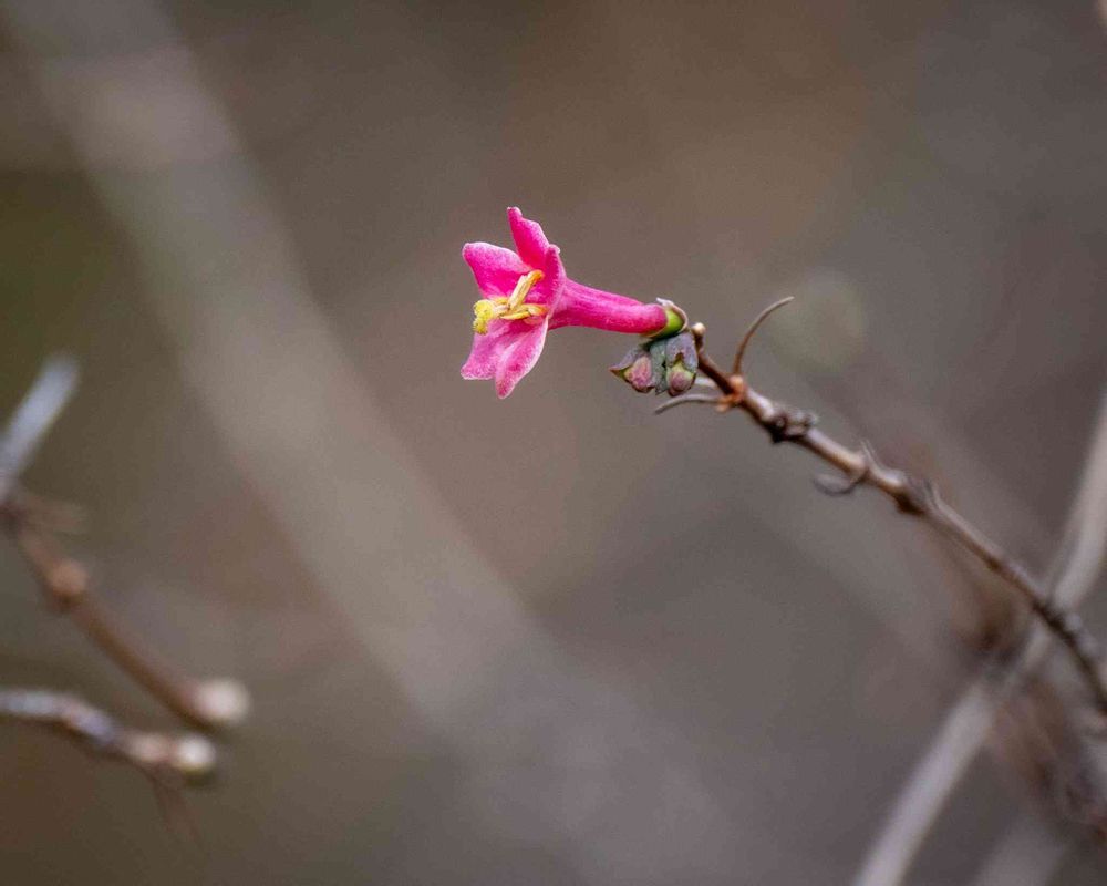雑木林に何本か植えられているウグイスカグラが早くも数輪花をつけていました。2024.01.24.撮影