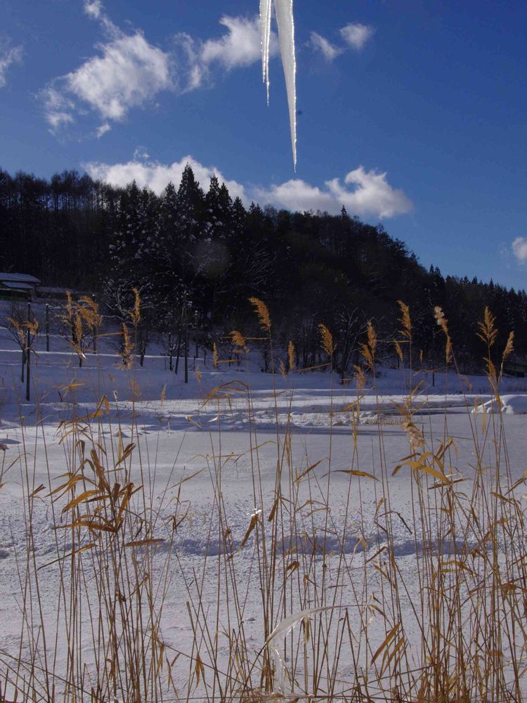 橋に出来たツララが丁度ススキの上にありました⬆️✌️