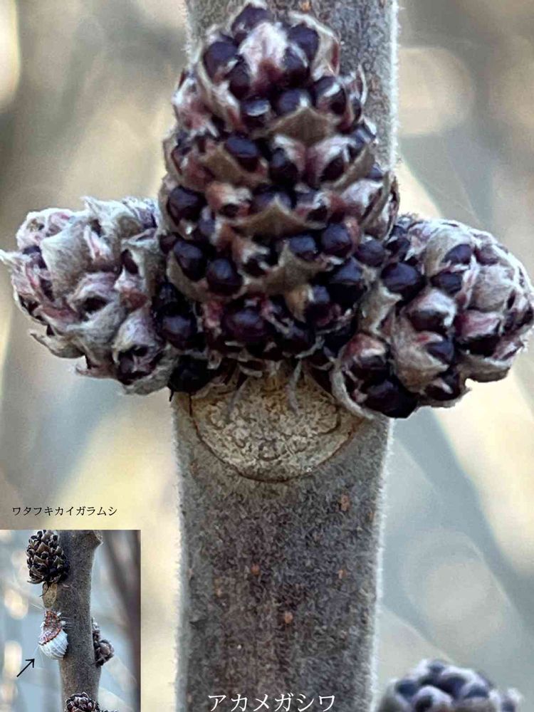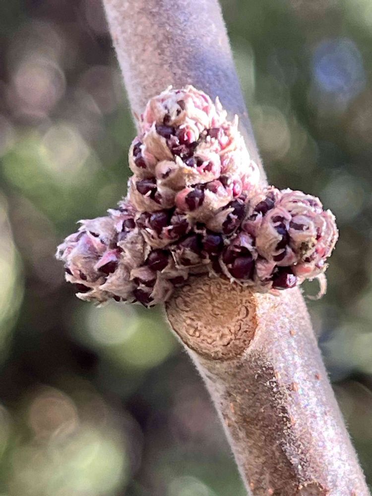 私も先日、アカメガシワの冬芽・葉痕を撮って来ましたが、あのシワシワからこんなに泡のように花芽⁇が噴き出て来るのですか⁉️