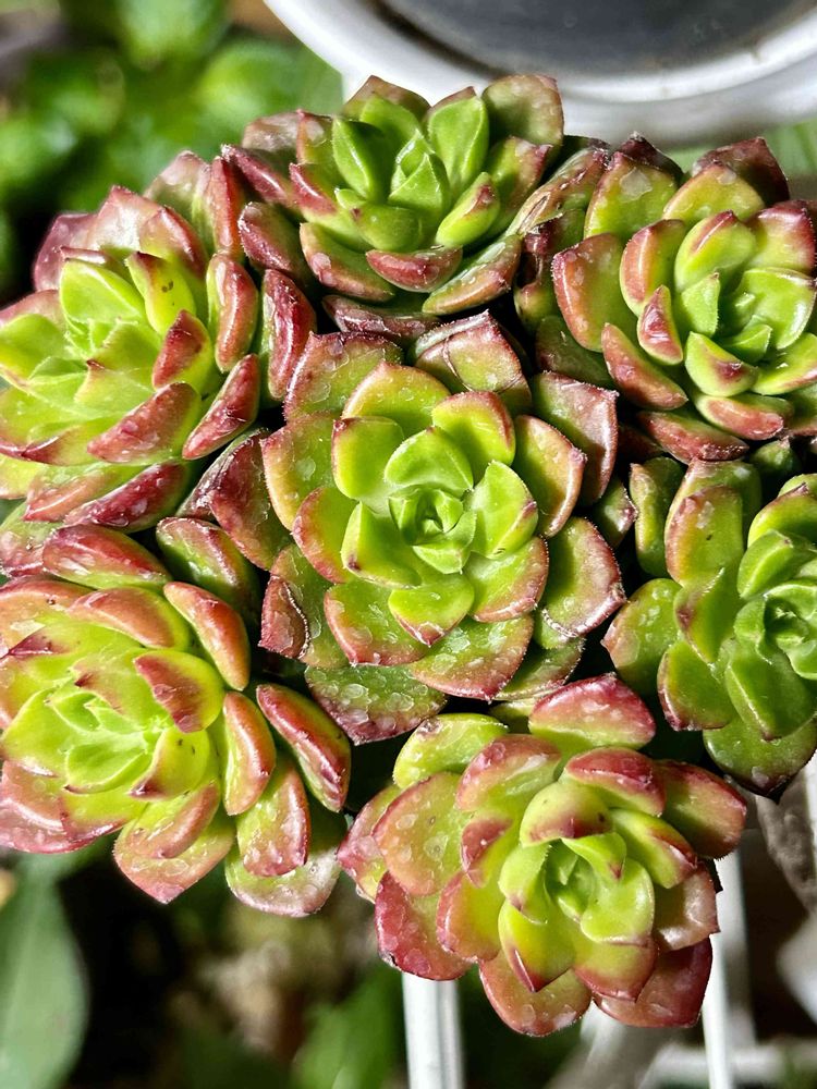 ホムセンで出会ったレディジアがバラの花束のように植えられて、縁取りも赤く色付いて思わず手が出てしまいました🤗💕🌵💕