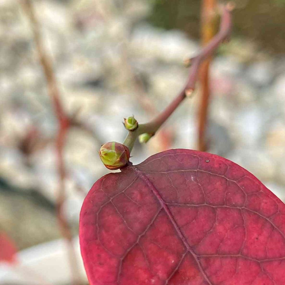 ブルーベリーの葉が紅葉して新芽も出てきたのですね🌱