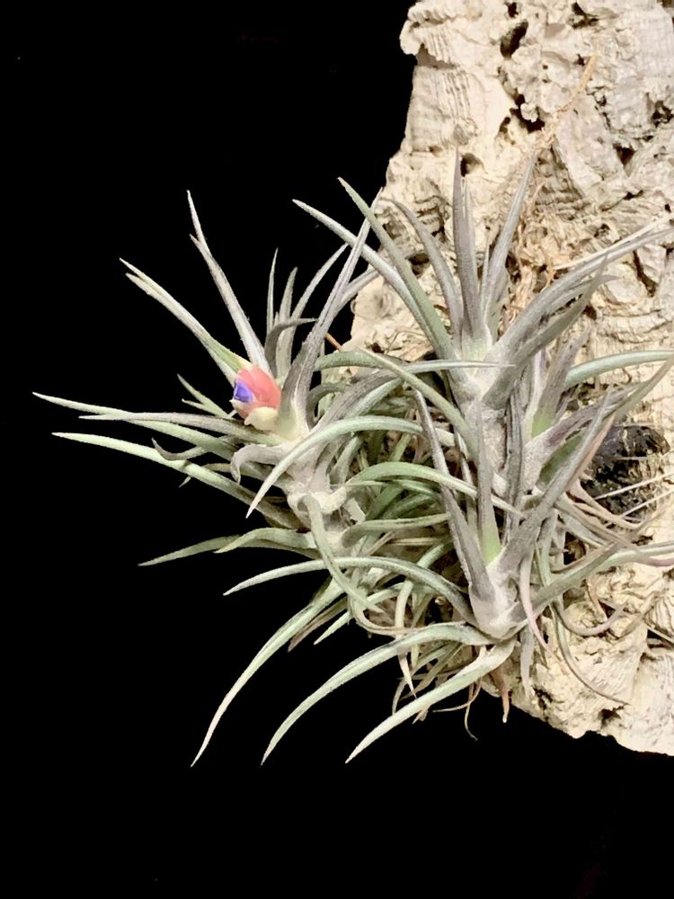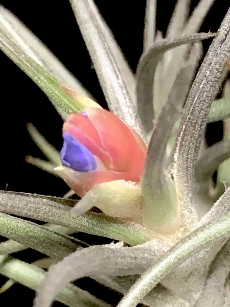 先日見せていただいたチランジアさんの蕾、お花が咲いてきましたね💜