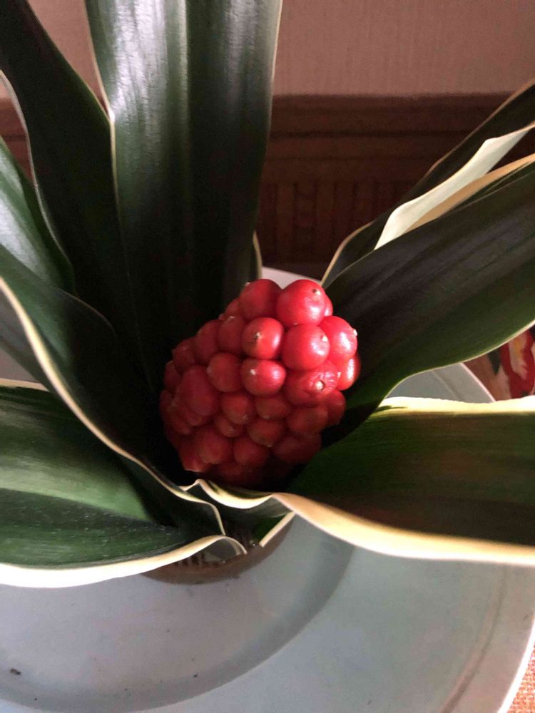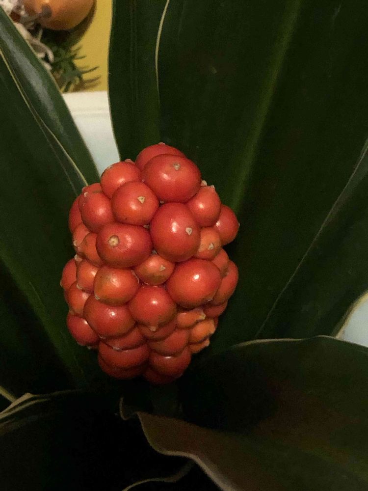 1️⃣お正月用に活けた万年青 少しオレンジ色がかっています。