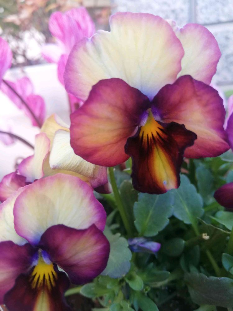 渋い色合いのビオラさん達の笑顔です😄🌺