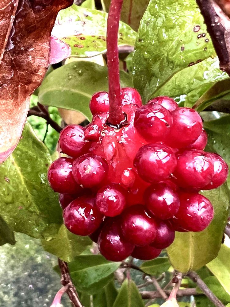 美男カズラの実が熟し過ぎで真っ赤に❤️美味しそう〜😋だけど‥エグくて不味いらしい😅