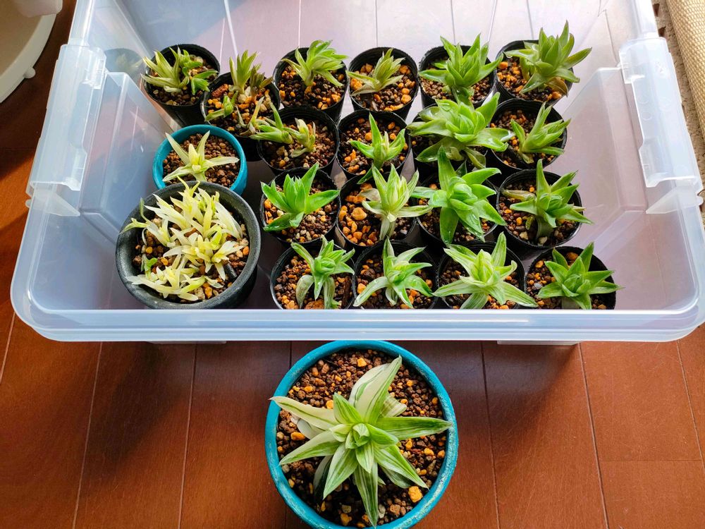 子株の半分くらいは斑が入っていませんでした。でも、斑が入ってない方が大きくて元気いっぱいですね。