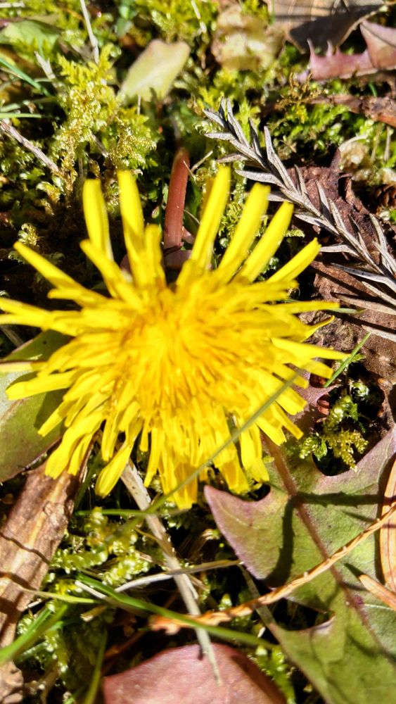 昨日、今日で❄️が1/3に減少、其で公園迄散歩したら、大きな木の根元に雪が無くてタンポポ咲いてたよ😆