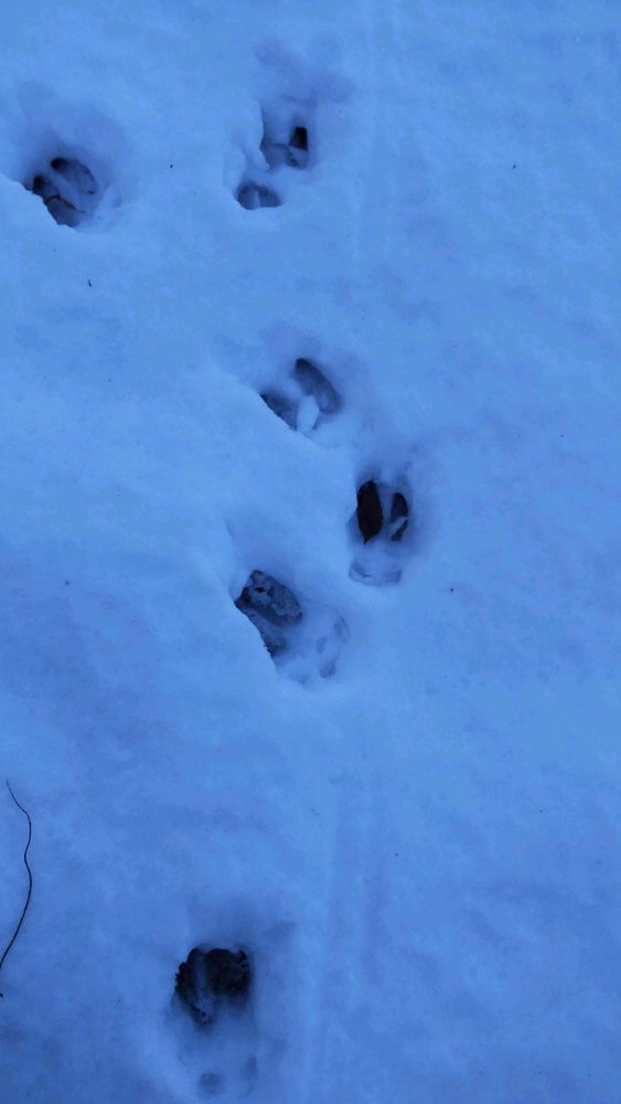 直ぐ側に鹿の足跡が、❄️の上にクッキリ👀 ユズリハの新芽が大好物で丸坊主にされちゃうの😭