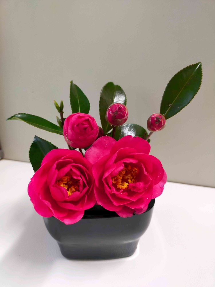 庭の山茶花が鈴なりに咲いているので、ミニアレンジ