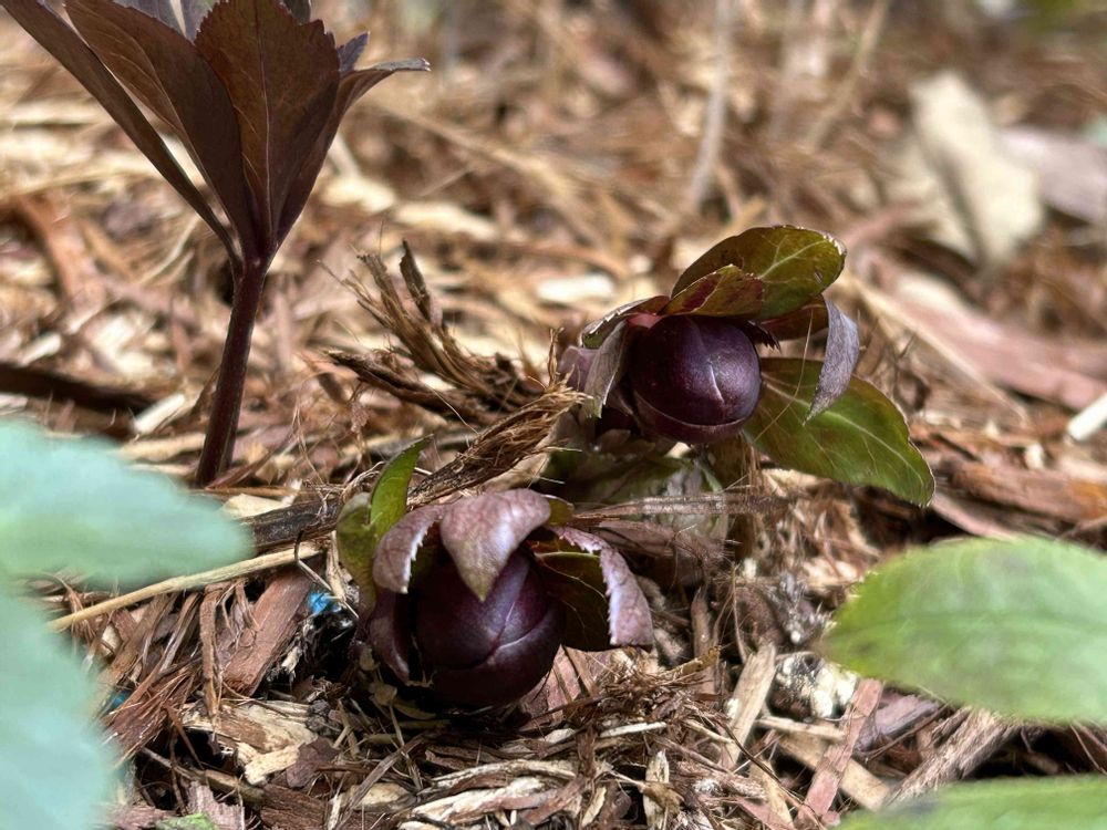 ②のクリスマスローズ🤍頑張ってる感ありますね〜💕地面から出てるみたいで面白い😊ウチのもよく見ると蕾はいくつかありましたよ💓黒系も開花が楽しみですネ💜
