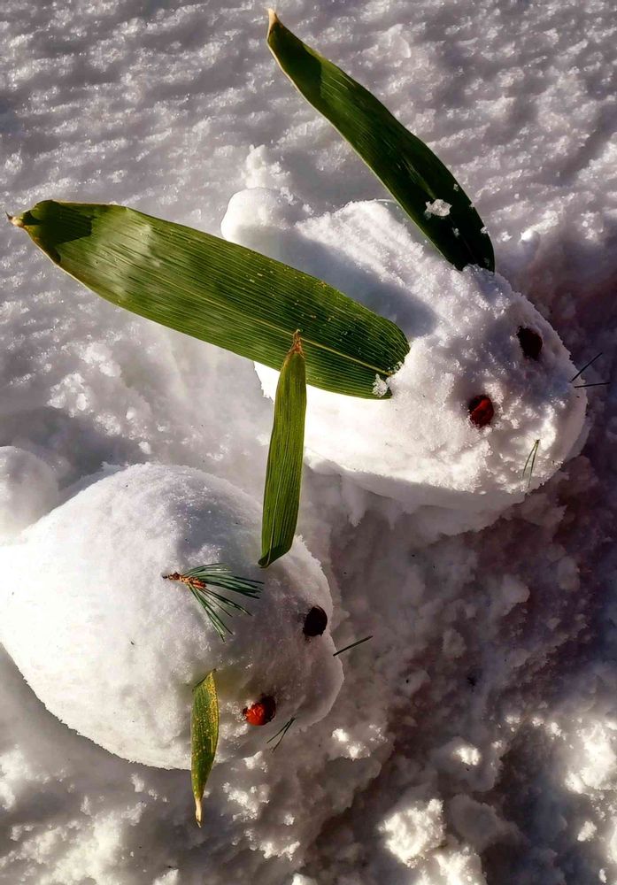 さん、この前のような気がします。孫と雪ウサギ作り。皆んな大きくなりました。