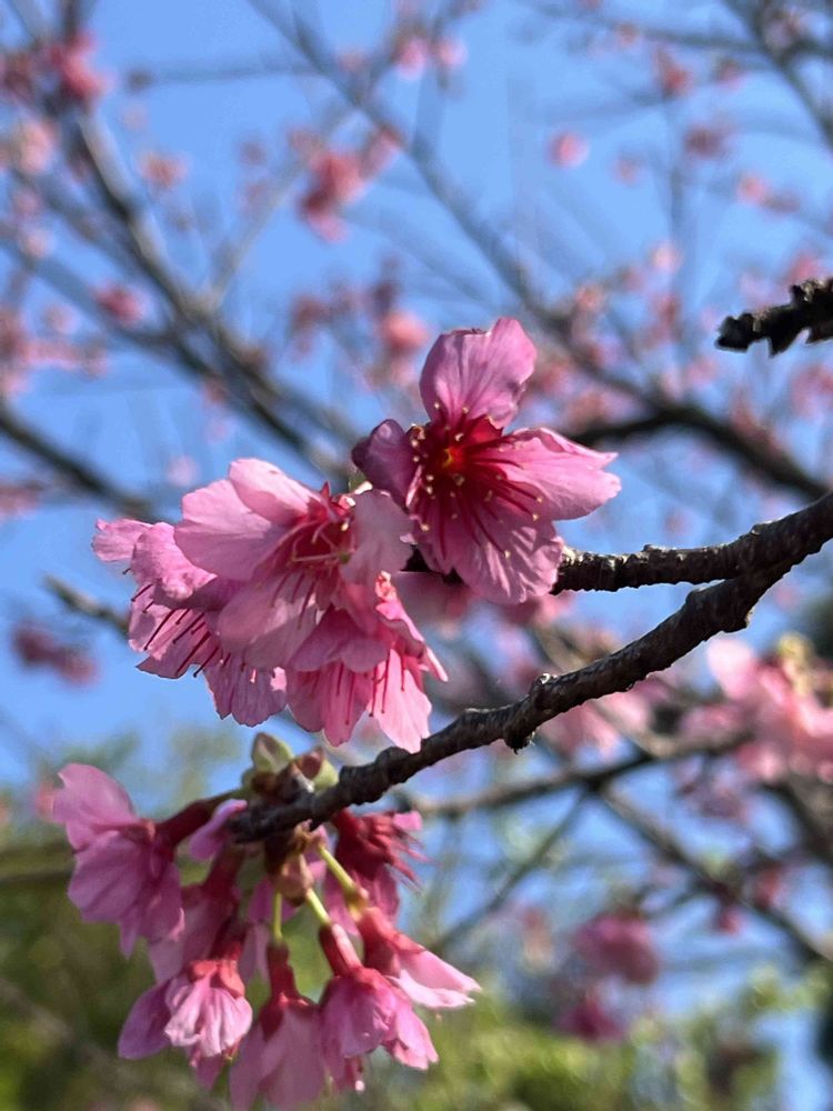 濃いピンク色の寒緋桜はとっても綺麗な色です。
