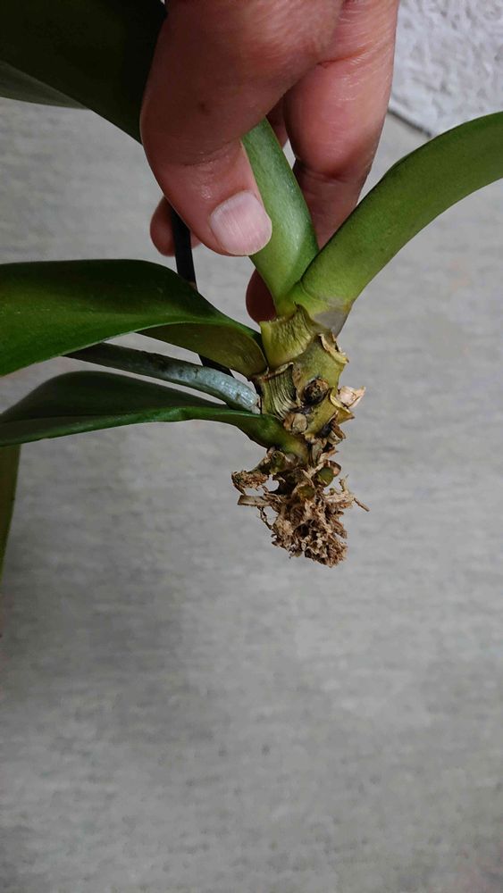 ミディ胡蝶蘭キャンディさん、葉っぱが2つも取れたので、危機感を感じて、1月だけど、植え替えしました。中は乾いてました。