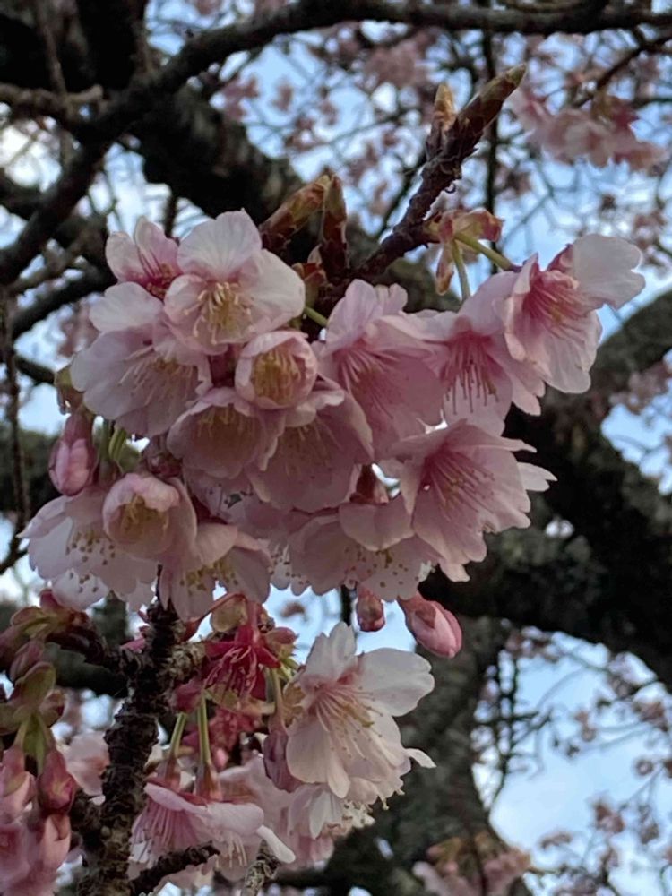 寒桜 緋寒桜と早咲き大島の交配種と名札が付けられていました🌸