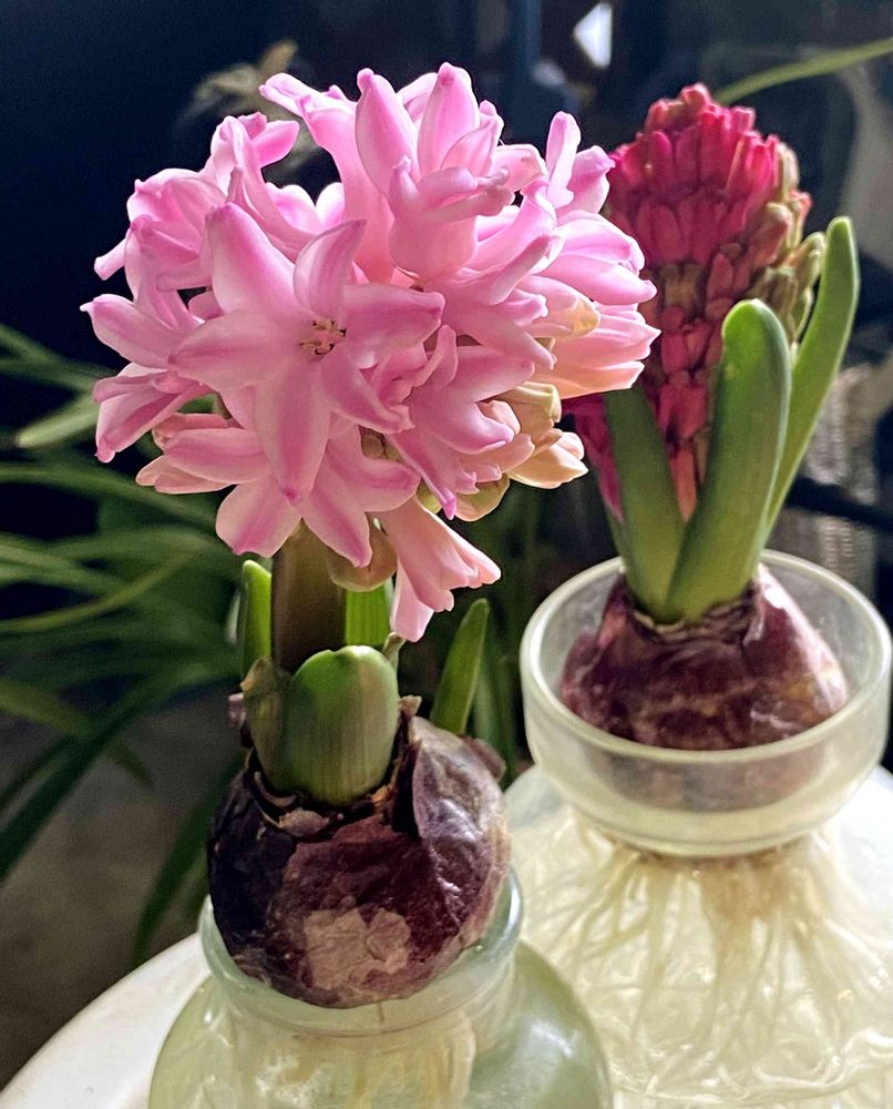 手軽にお花と香りも楽しめるヒアシンスの水栽培はオススメですよ😉🪻