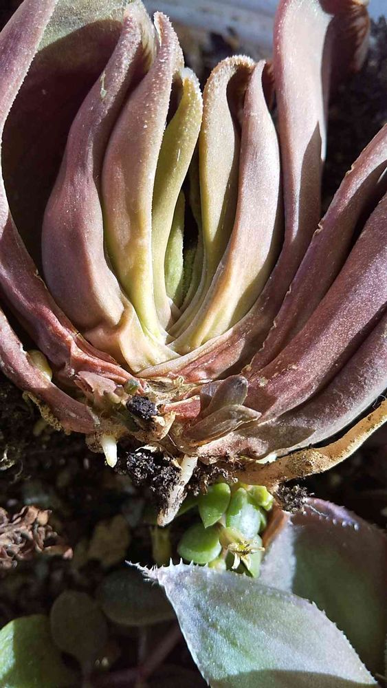 枯れちゃたかな❓️🤔と思ってたグリーン玉扇に根や子株がありました😳