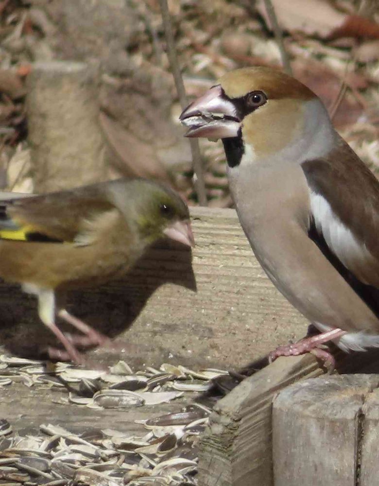 観察用に設けられた餌台には向日葵の種が置いてあり野鳥が仲良く?食べてました😊
