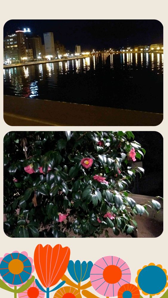 弊舞橋からの釧路川は 街灯が水に映えて 綺麗だった 夜空の向こうは湿原が眠る