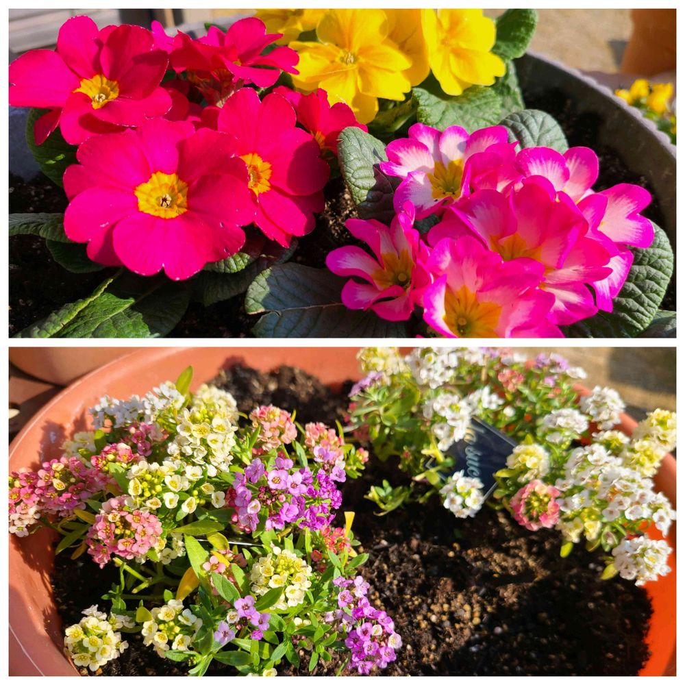 プリムラさんアリッサムさん カラフルで元気をいただくお花ですね🤗🎶🎶