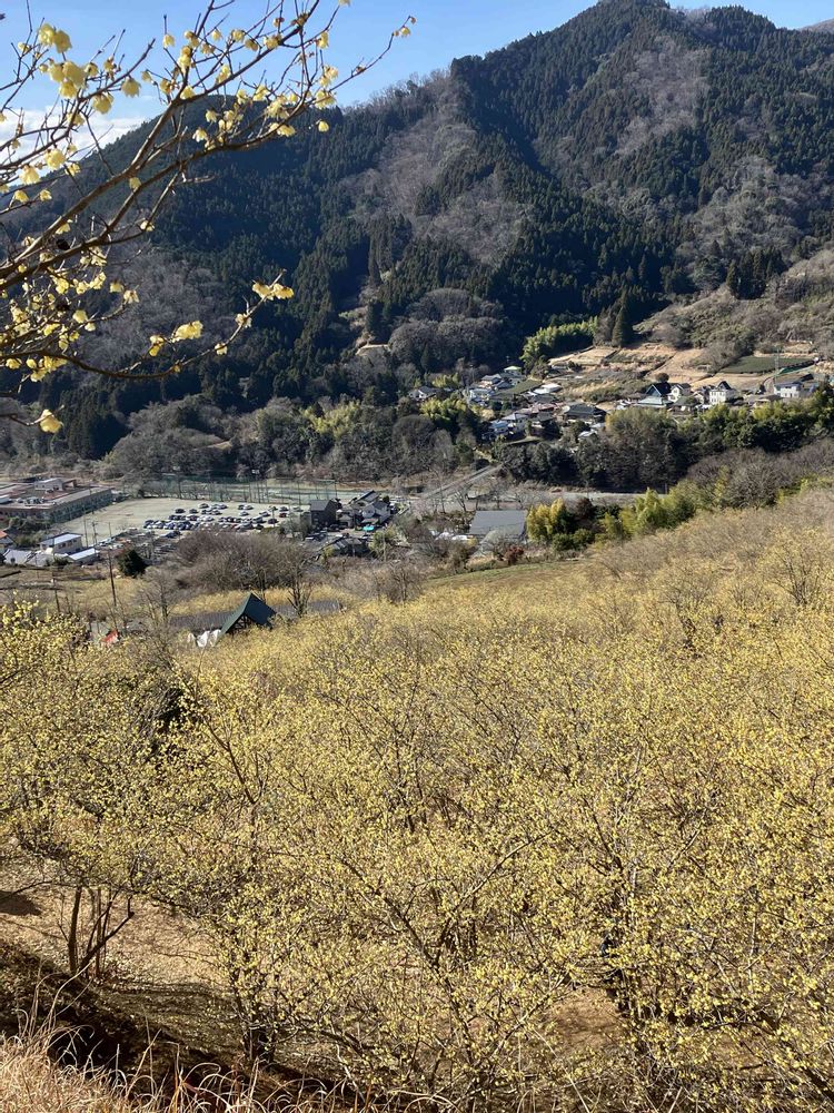 ロウバイが咲くこの場所は、山々に囲まれて静かな所ですけど