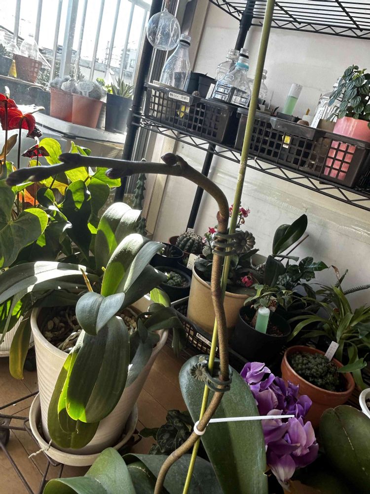 胡蝶蘭とミディ胡蝶蘭13本の中で5本の茎が伸びて来ました😄