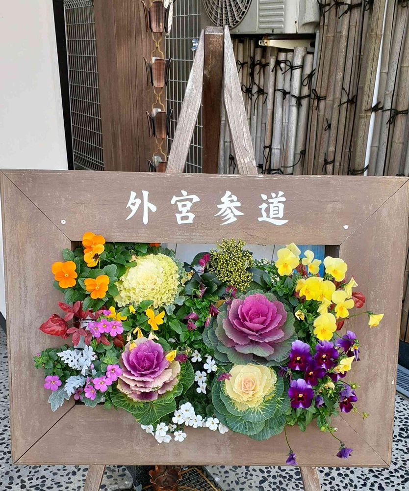 ①駅から外宮へ向かう途中のお店の入口全てにこのようなスタンド型の寄せ植えが置かれていました。めちゃ可愛い💓