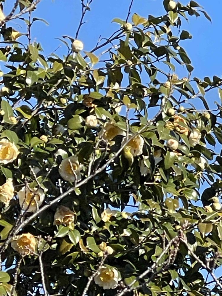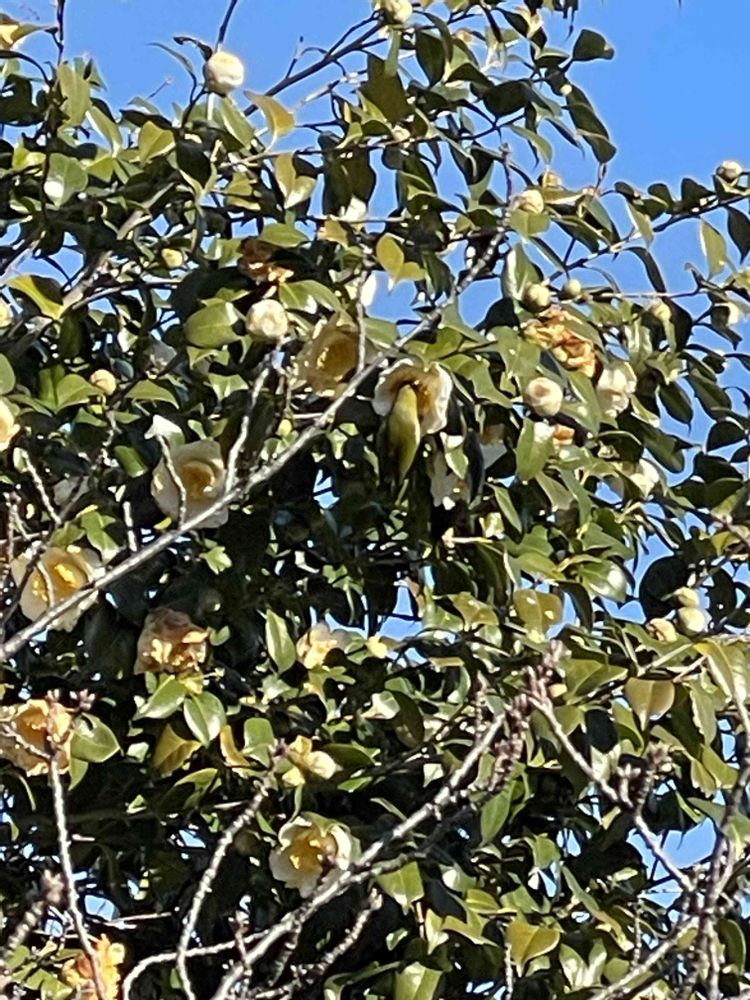 葉っぱと胴体の色が被り、目の周りの白さと白椿が被り、赤い椿の周りにいる時より見つける難易度上がってました😅