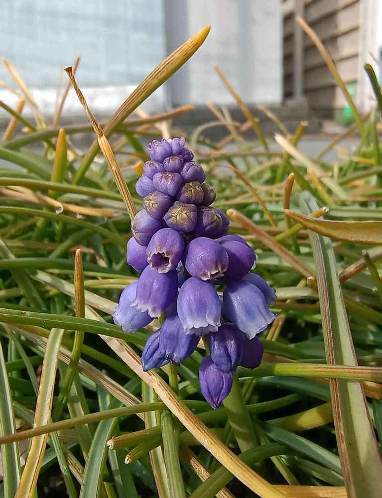 花壇にひとつだけ小さなムスカリが咲いていました。