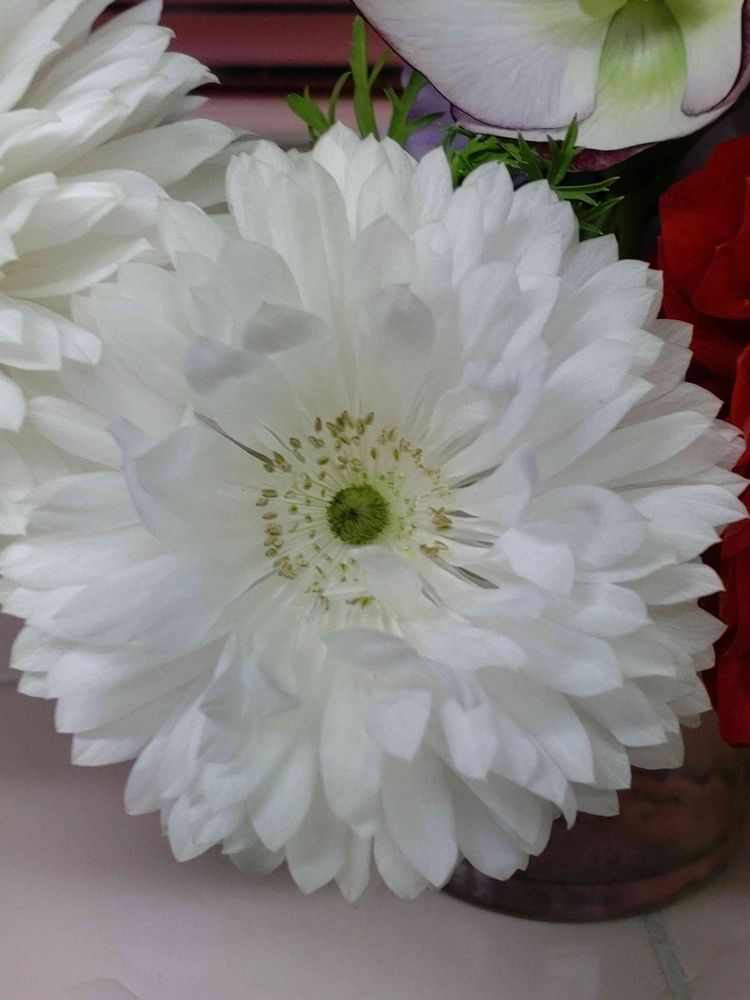 この間見せていただいたアネモネ 綺麗に開き シベがよく見えますね❤️🤍❤️🤍
