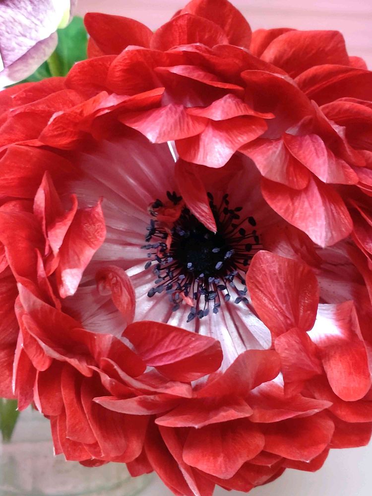 アネモネが、すっかり開いて、赤と白のシベの違いがはっきりしました。
