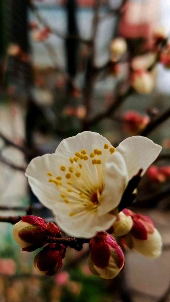 待っていた小梅の花、やっとこさの開花です。