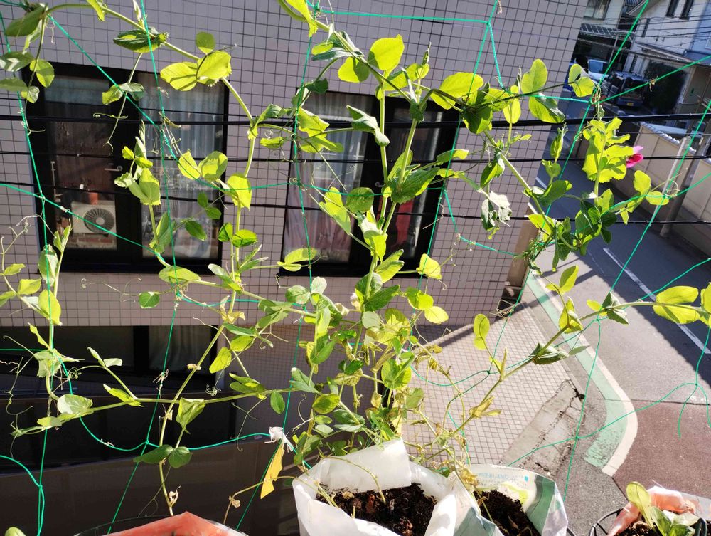 去年秋に好きにさしたスーパーの豆苗がこんなに大きく育ってお花もつけてくれました。